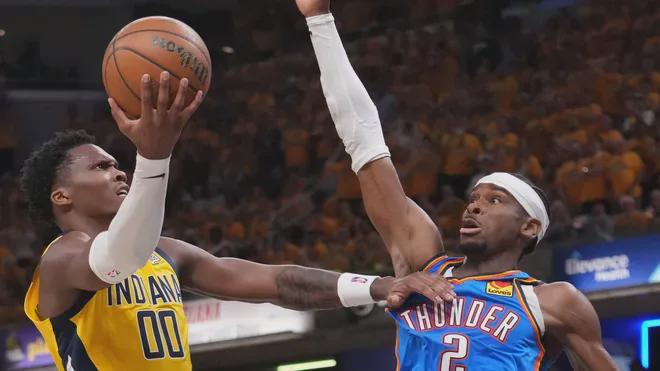 某种程度上,步行者确实在用雷霆的方式赢雷霆——意外的抄截球,变态的中路刷卡,严密封锁突破路线,与此同时还有快捷的轮转,以及,防守成功后的快攻献上。另一个有点雷霆的地方是阵地战硬解保底输出,雷霆这一招基本由SGA包圆,杰威这方面的贡献并不稳定,其他人都是零敲碎打。步行者G3的硬解则来自于多个球员,大家的方式有所不同: