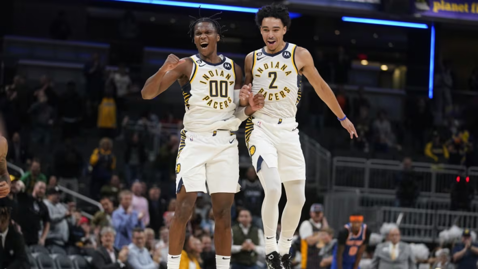 内姆布哈德则将接过控球后卫的重任。此前他已有过临危受命的亮眼表现,最典型的便是2024年东部决赛中,哈利伯顿缺阵的第三、四场比赛——面对朱-霍勒迪、德里克-怀特与杰伦-布朗的轮番防守,内姆布哈德仍以高效命中率两战贡献56分。