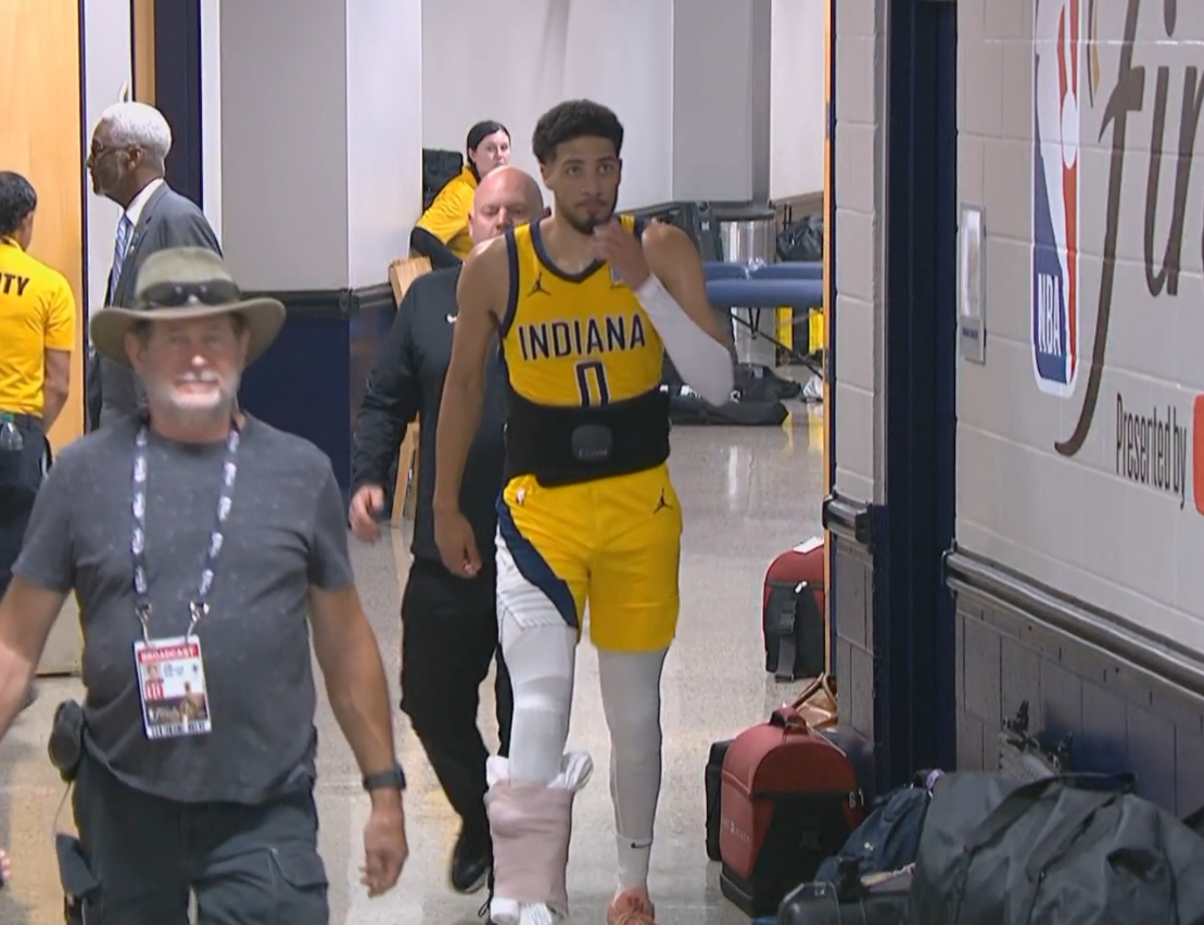 在新闻发布会结束之后,哈利伯顿一瘸一拐的离开了现场,接下来,双方将会在步行者的主场进行G6的比赛。